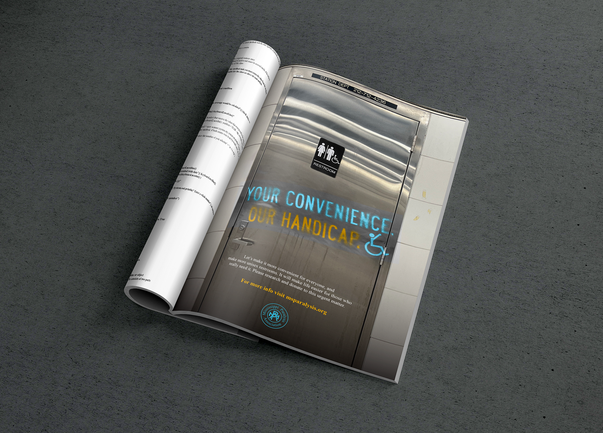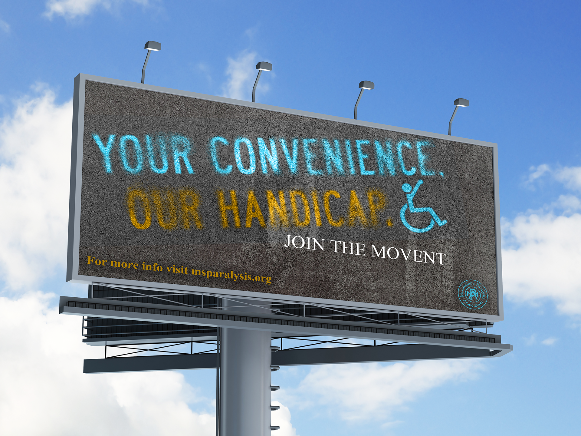 This Ad Campaign is a call to action, related to the advantage that a lot of physically abled people take everyday. The blue color represents those with physical disabilities, and the yellow represents those who are physically abled.